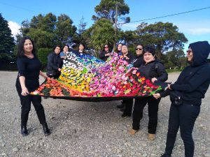El trabajo del colectivo no termina en la mesa de tejido. Es una forma de sostener la unidad en tiempos difíciles. “Después del plebiscito, muchas se fueron a sus casas —dice Nancy—, pero creemos que hay que seguir. Mantenernos unidas, sostenernos entre mujeres. Porque así como tejemos flores, tejemos también comunidad.”